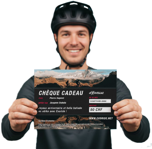 Le bon cadeau est valable également pour la location de VTT, VTTAE et équipements de protection sur l'ensemble des prestations accompagnées Exoride (guidage, cours, navettes).
